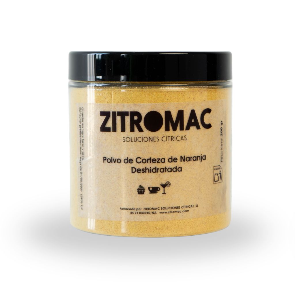 DEHYDRATED ORANGE PEEL POWDER – At Zitromac we carefully process the peel of selected oranges, dehydrating them at low temperature to preserve their natural aroma and essential oils. Once ground, we obtain a fine and uniform powder, with no added sugars or preservatives.